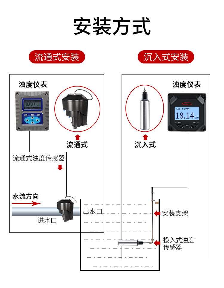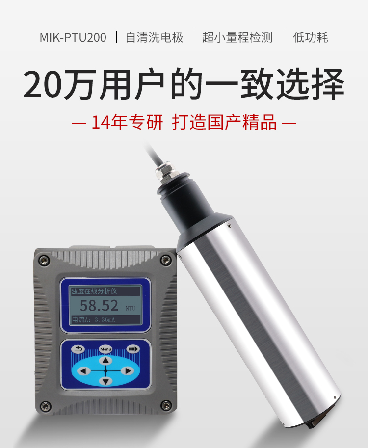 MIK-PTU200传感器基于组合红外吸收散射光线法,应用ISO7027 方法可以连续测定浊度。按照ISO7027 红外双散射光线技术不受色度影响测定浊度值。根据使用环境可以选配带自清洗功能。数据稳定,性能可靠;内设自诊功能,保证数据准确;安装和校正简单。